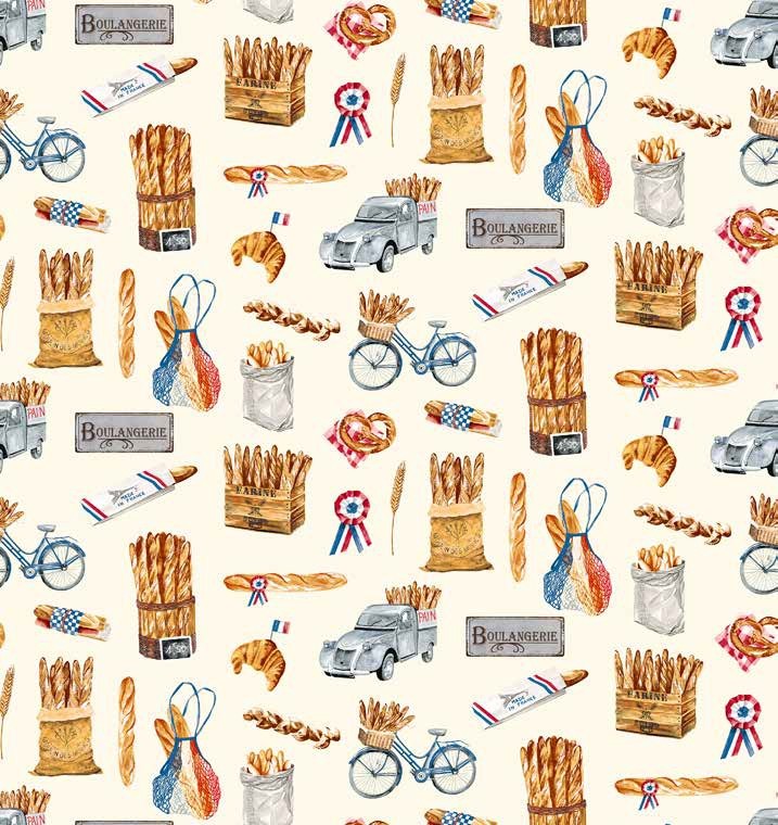 Coupon tissu enduit 50X150CM Baguettes Francaise